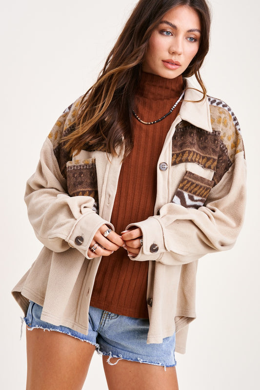 Kayla Oversized Aztec Print Contrast Corduroy Jacket La Miel HAJ1730