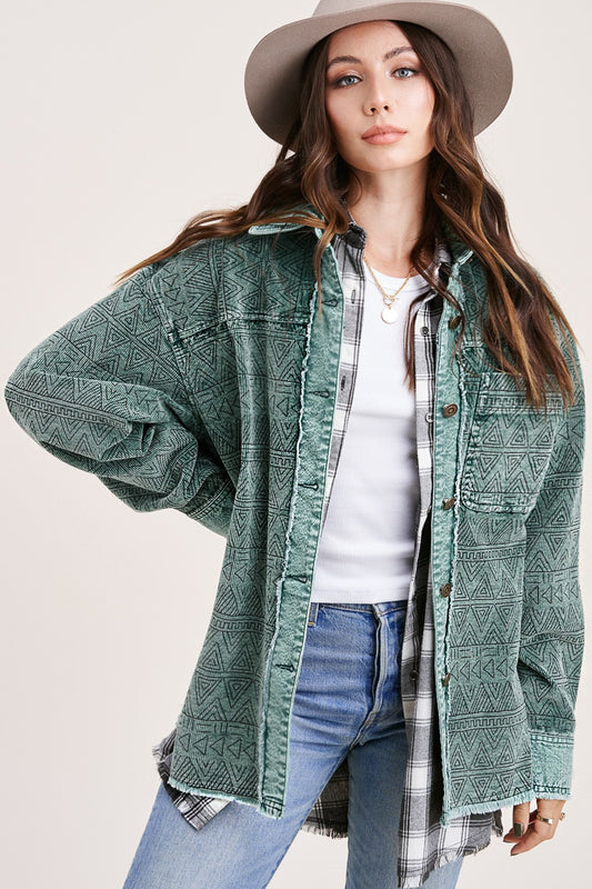 HAJ1730 La Miel Kayla Oversized Aztec Print Contrast Corduroy Jacket