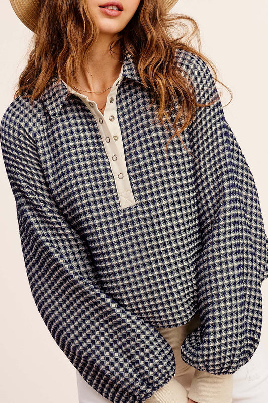HCS3576 LA MIEL OVERSIZED TWO TONE TEXTURED LONG SLEEVE TOP